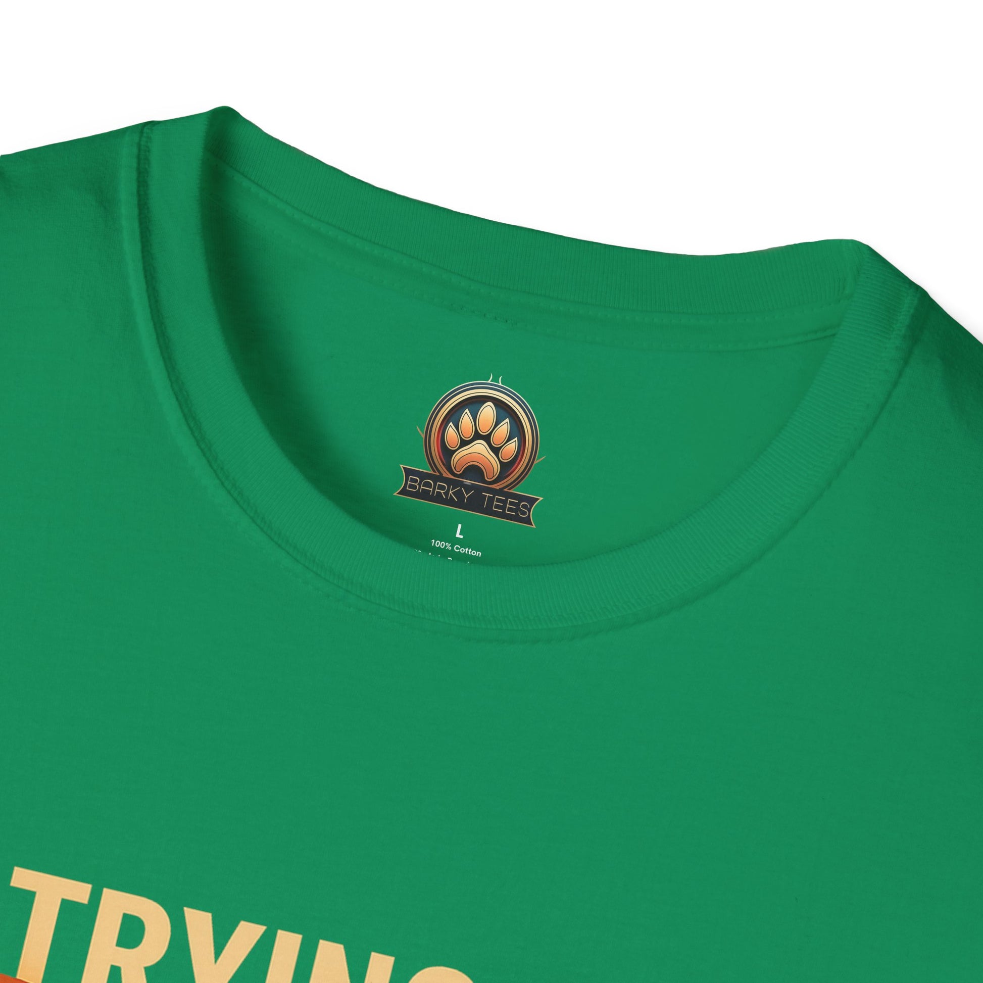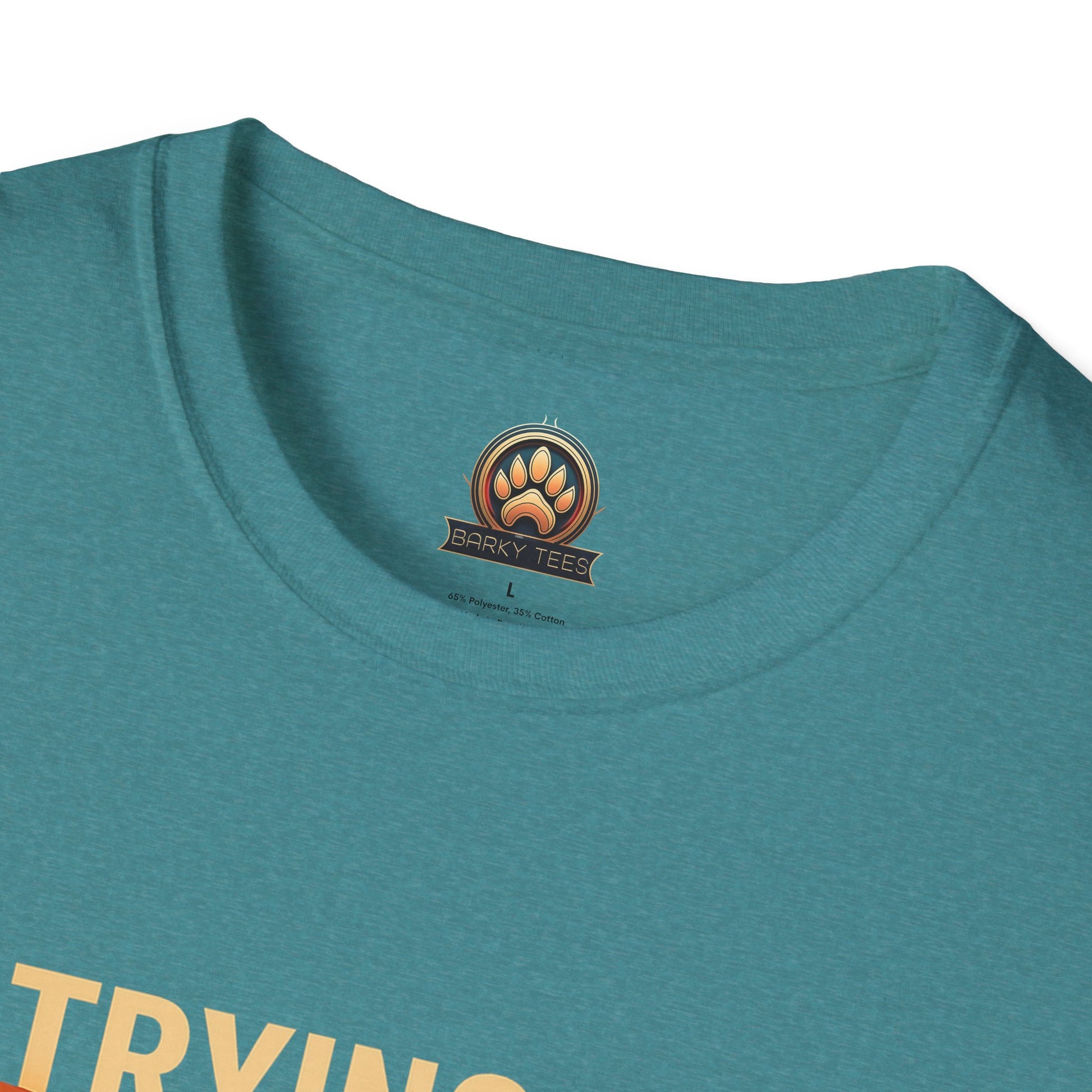 The Trying My Best – Blame the Dog Tee captures the classic standoff every pet owner knows too well. A polygon-style man and his guilty-yet-confident pup point fingers (or paws) in mutual defense over a toppled trash can—an honest snapshot of life, laughter, and loyalty. With its clean print, soft cotton feel, and easy fit, this tee is made for anyone doing their best and owning the chaos with humor and style.