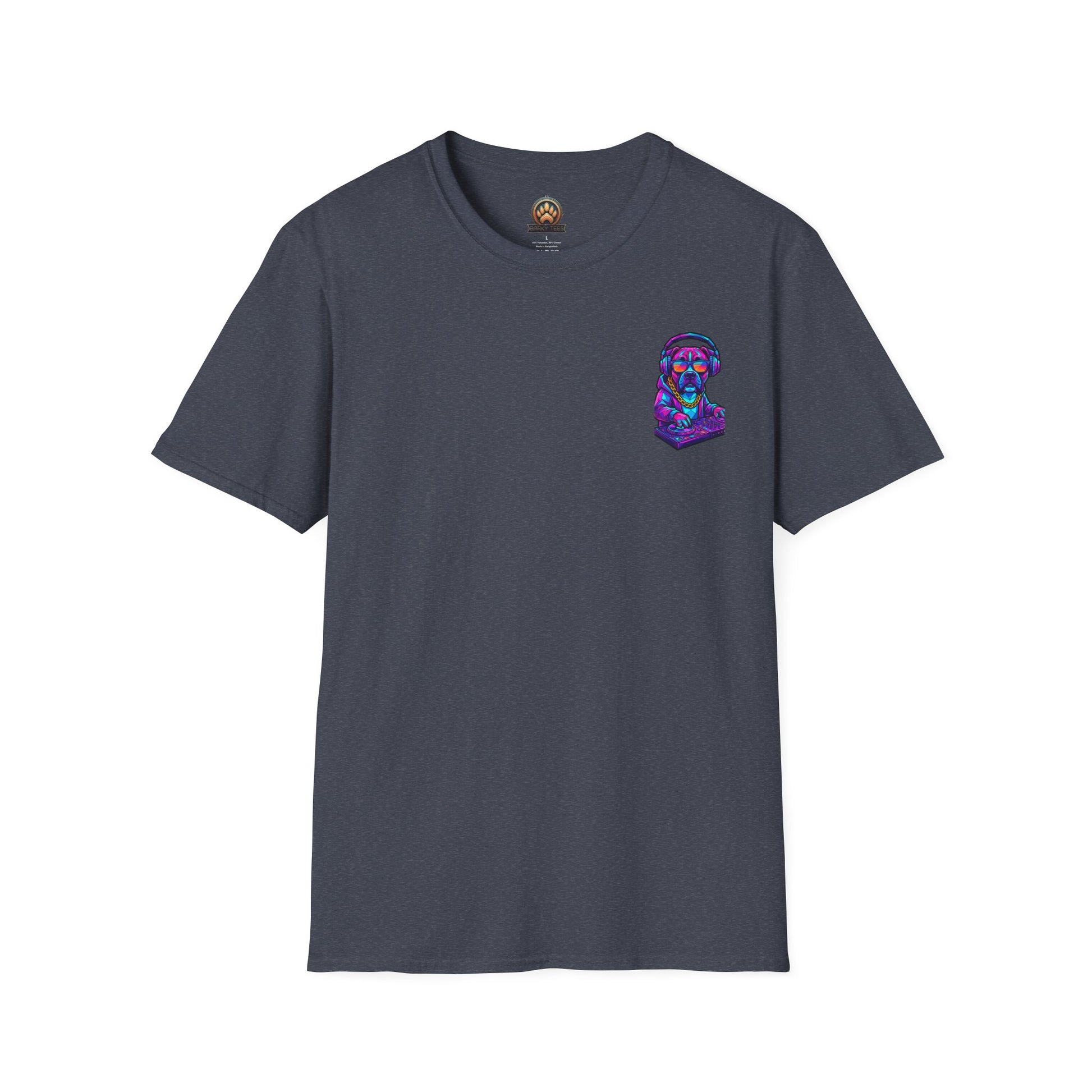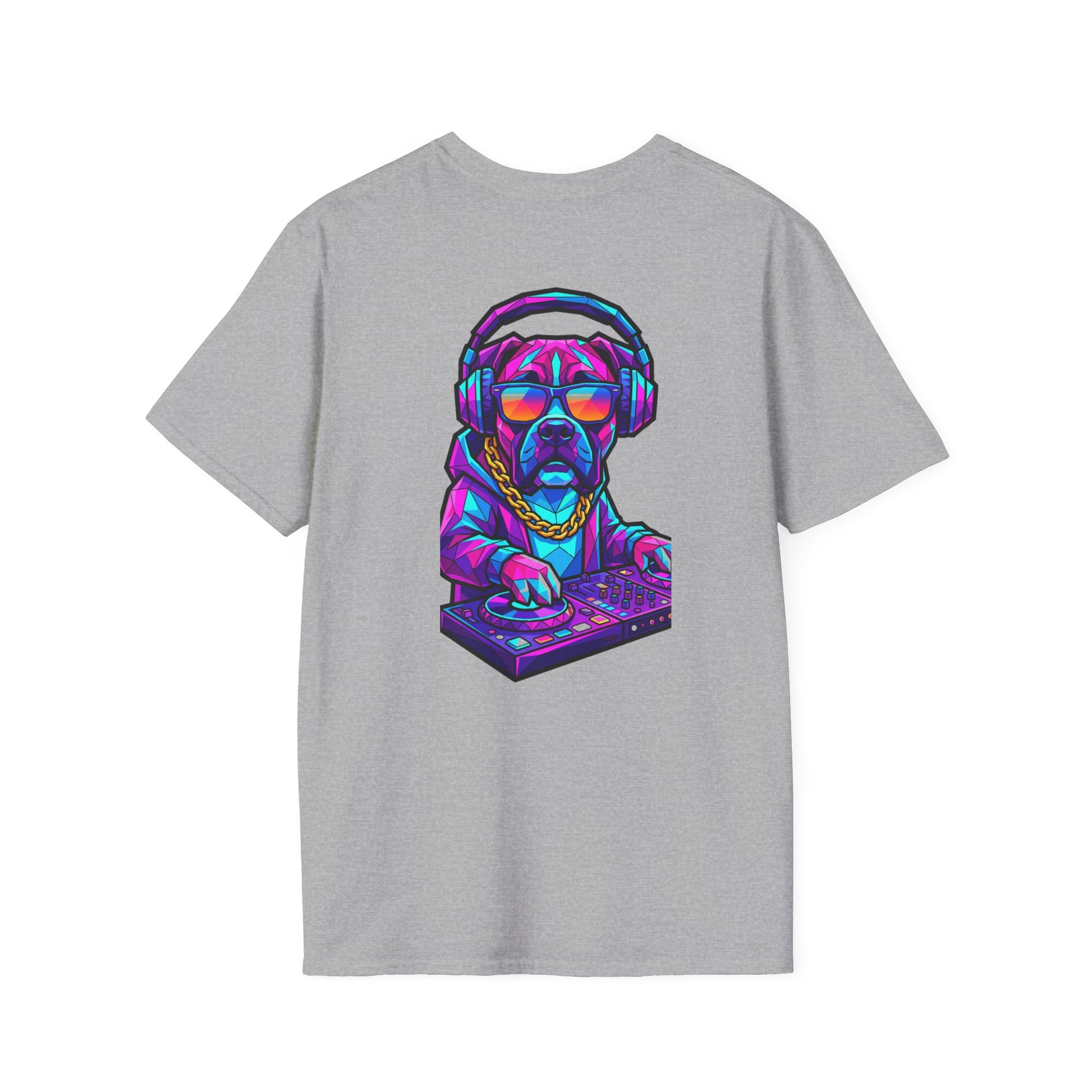 Turntables, treats, and total swagger. The DJ Boxer Tee brings nightclub energy to the Barky Tees lineup—featuring a neon polygon Boxer rocking headphones, shades, and a gold chain while working the decks like it’s headlining the main stage. Loud colors, big personality, and zero chill (in the best way). Perfect for Boxer lovers, music fans, and anyone who likes their style a little rowdy.
