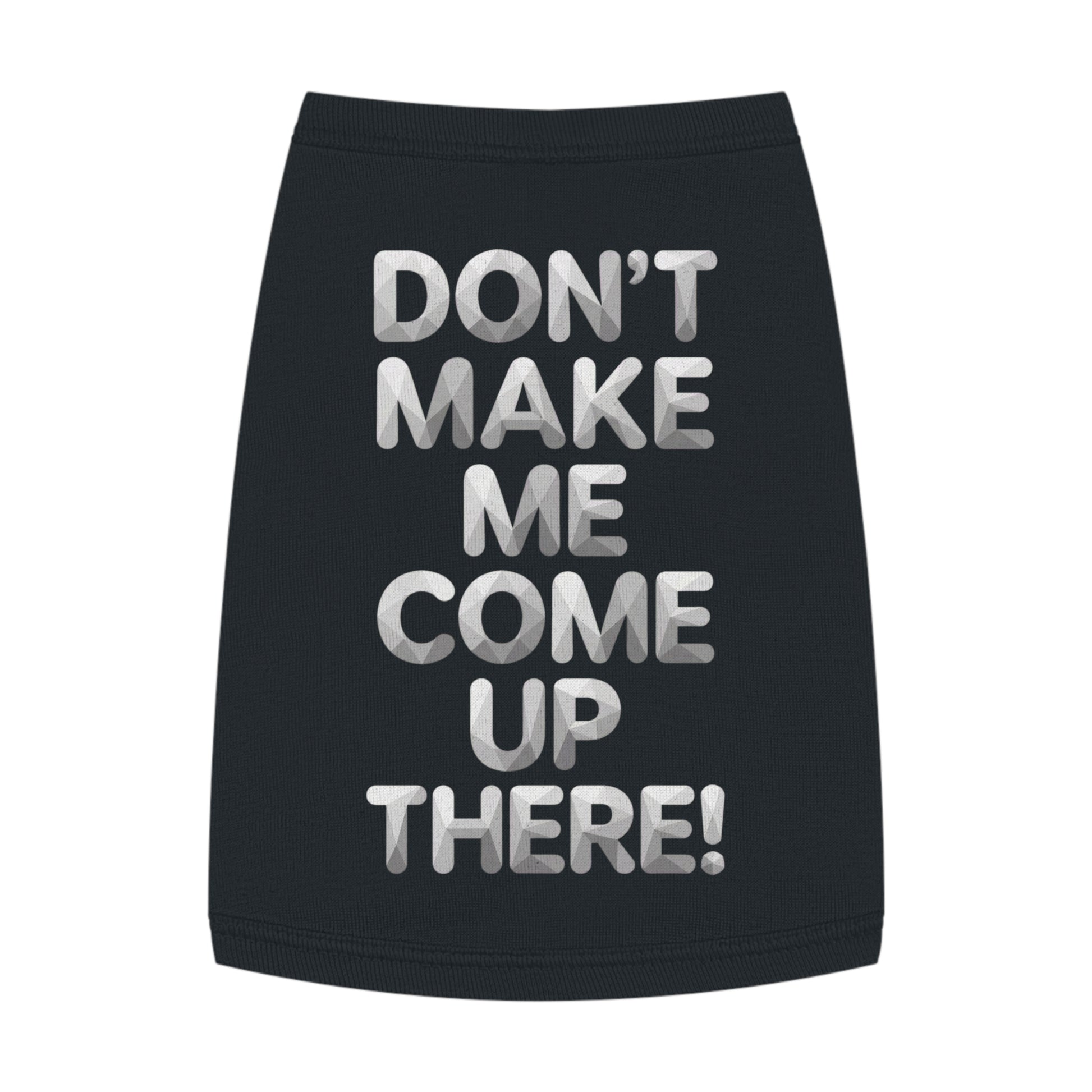 Small dog energy. Big boss attitude. The Don’t Make Me Come Up There! Dog Tank is for the pups who run the house (and aren’t afraid to remind everyone). Clean, bold typography on a classic black tank makes this a funny, photo-ready fit for walks, park days, and any moment your dog is feeling spicy.