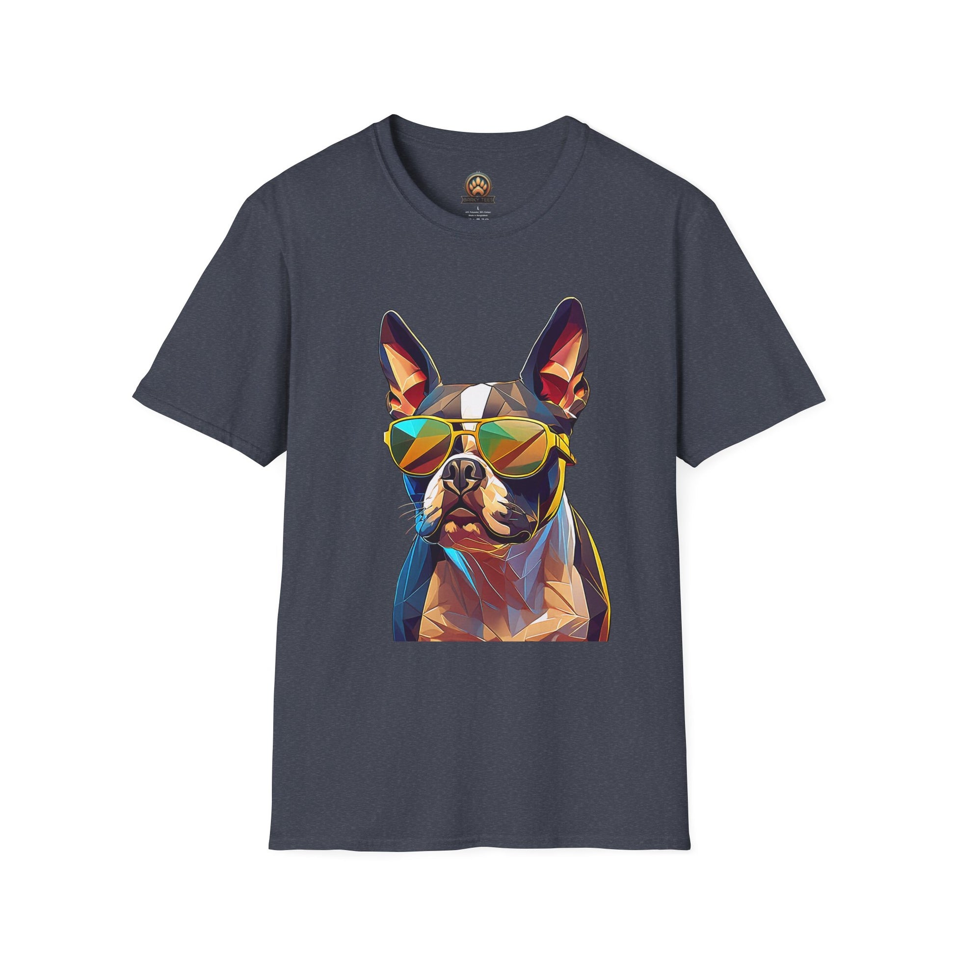 😎 Statement Style: Polygon pop-art Boston Terrier with shades—bright, confident, and impossible to miss.