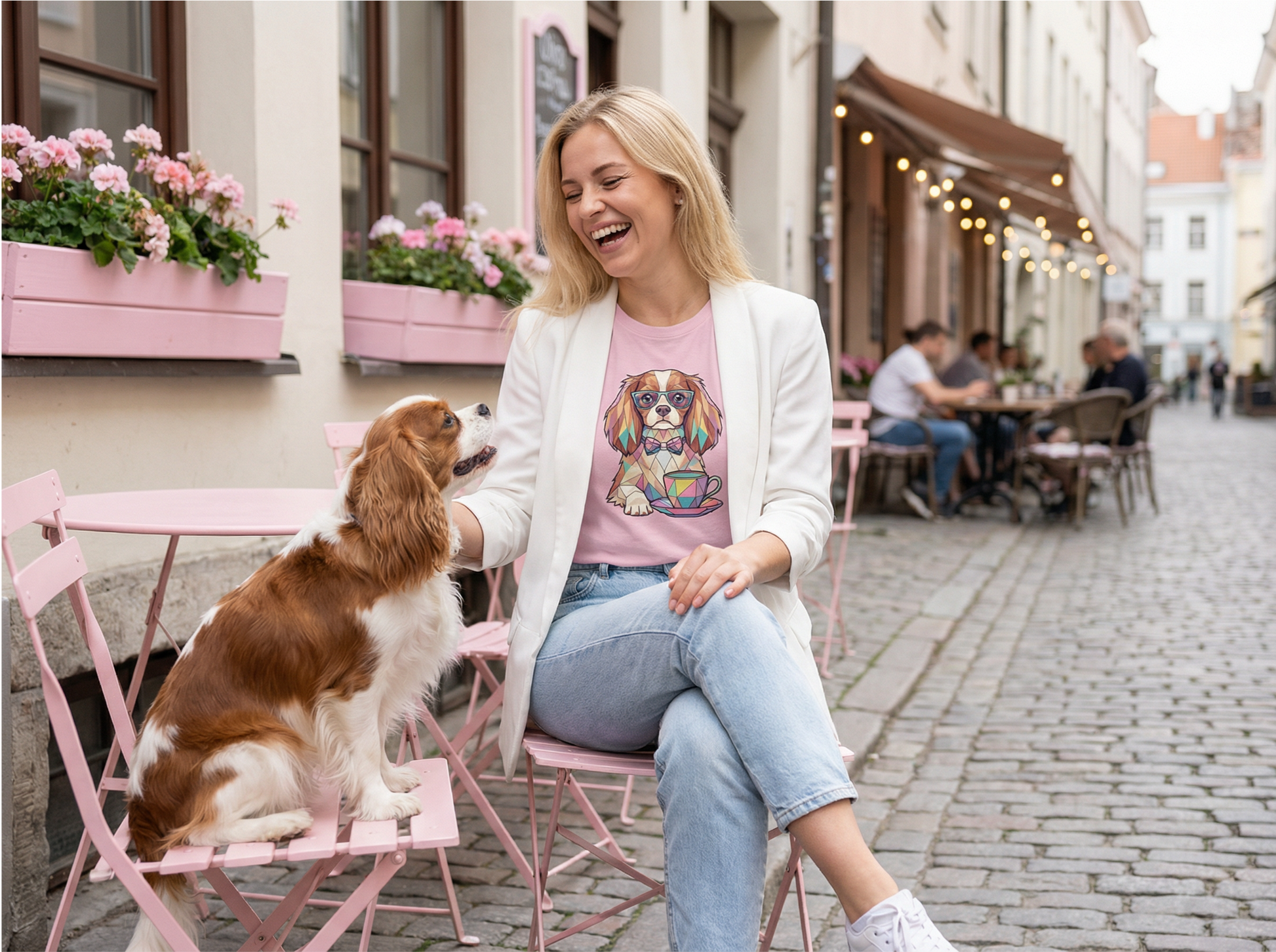 Polite, playful, and always ready for a treat. The Tea Party Cavalier King Charles Tee blends soft pastel color with everyday comfort, bringing Barky Tees’ signature edge to a charming classic. Whether you’re sipping lattes at a café or enjoying a walk in the park, this tee adds a touch of class while keeping things cool and casual.